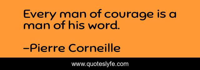 This page presents the quote "Every man of courage is a man of his word.". Author of this quote is Pierre Corneille. This quote is about word, man,.
