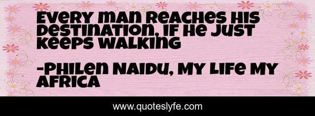 This page presents the quote "Every man reaches his destination, if he just keeps walking". Author of this quote is Philen Naidu, My Life My Africa. This quote is about enthusiasm, inspirational,.