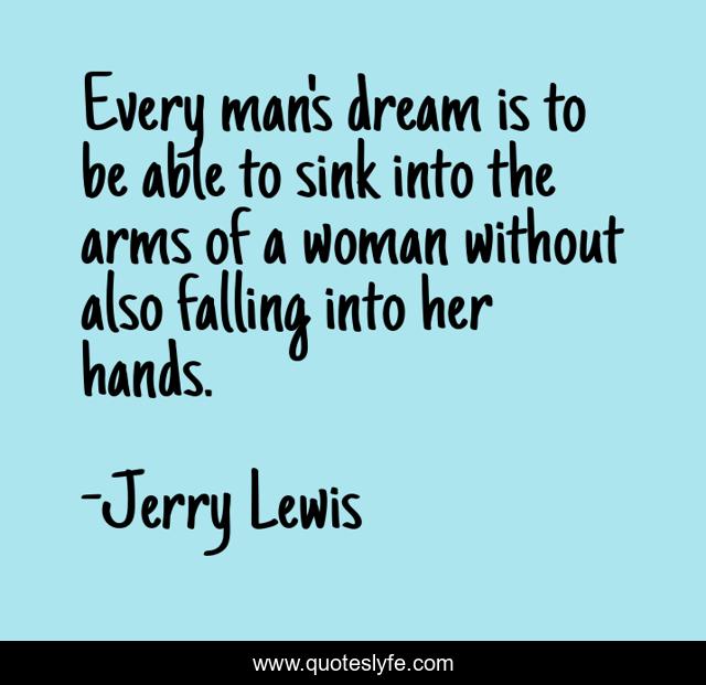 This page presents the quote "Every man's dream is to be able to sink into the arms of a woman without also falling into her hands.". Author of this quote is Jerry Lewis. This quote is about woman, man, hands,.