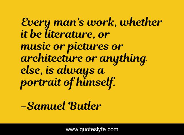 This page presents the quote "Every man's work, whether it be literature, or music or pictures or architecture or anything else, is always a portrait of himself.". Author of this quote is Samuel Butler. This quote is about art, work, music, literature,.