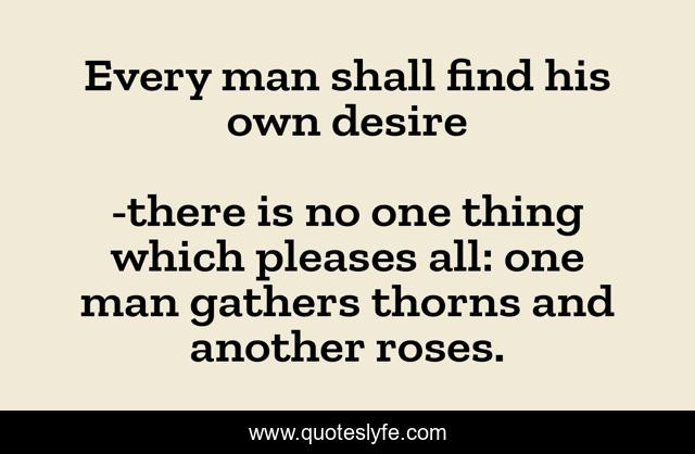 "there is no one thing which pleases all: one man gathers thorns and another roses. Quotes." Quoteslyfe.com, 2025. Sat. 06 Dec. 2025. <https://www.quoteslyfe.com/quote/Every-man-shall-find-his-own-desire-145566>.