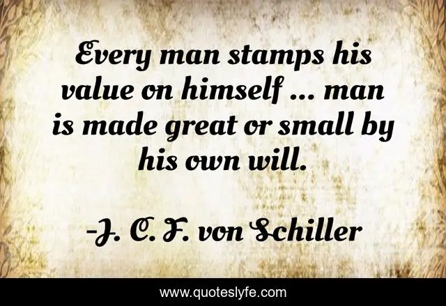 "J. C. F. von Schiller Quotes." Quoteslyfe.com, 2025. Mon. 08 Dec. 2025. <https://www.quoteslyfe.com/quote/Every-man-stamps-his-value-on-himself-275626>.