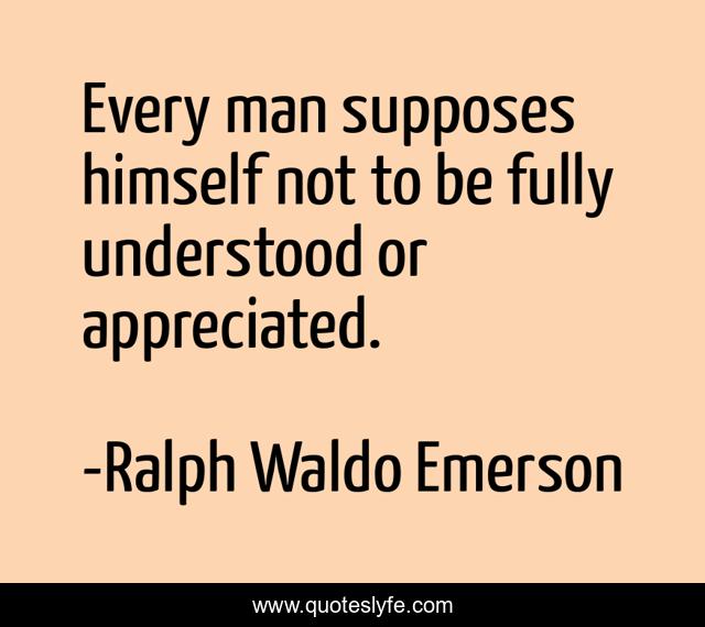 This page presents the quote "Every man supposes himself not to be fully understood or appreciated.". Author of this quote is Ralph Waldo Emerson. This quote is about pity, self,.