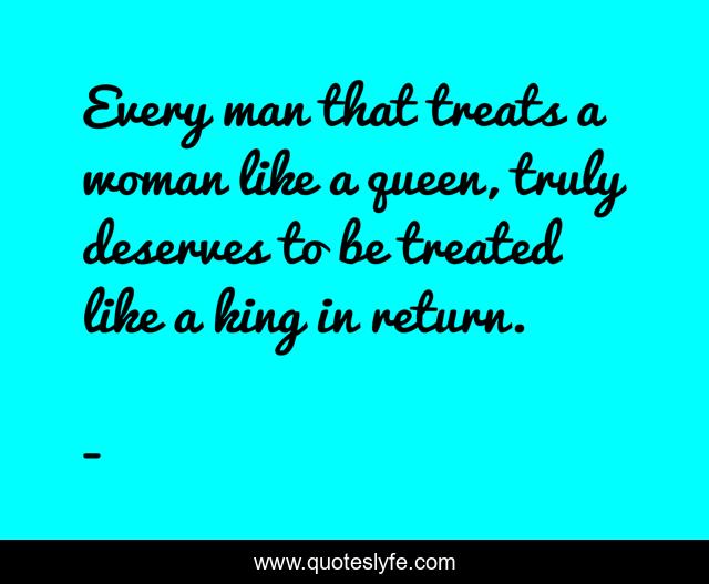 This page presents the quote "Every man that treats a woman like a queen, truly deserves to be treated like a king in return.". Author of this quote is . This quote is about edmond-mbiaka, every-man-is-a-king, every-woman-is-a-queen, treat-a-man-like-a-king, treating-a-woman-like-queen,.