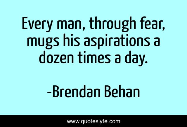This page presents the quote "Every man, through fear, mugs his aspirations a dozen times a day.". Author of this quote is Brendan Behan. This quote is about through, day, man,.