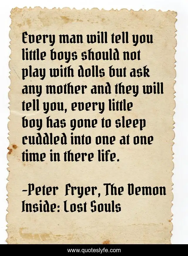 "Peter Fryer, The Demon Inside: Lost Souls Quotes." Quoteslyfe.com, 2025. Sat. 06 Dec. 2025. <https://www.quoteslyfe.com/quote/Every-man-will-tell-you-little-boys-146539>.