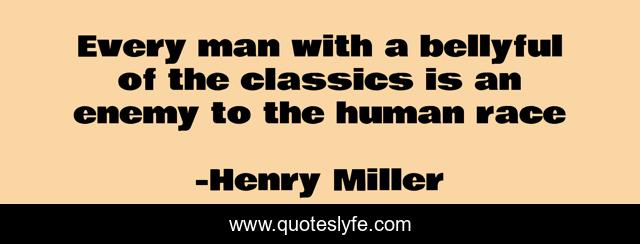 This page presents the quote "Every man with a bellyful of the classics is an enemy to the human race". Author of this quote is Henry Miller. .