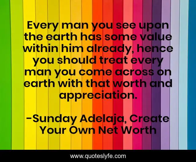 Every man you see upon the earth has some value within him already, hence you should treat every man you come across on earth with that worth and appreciation.