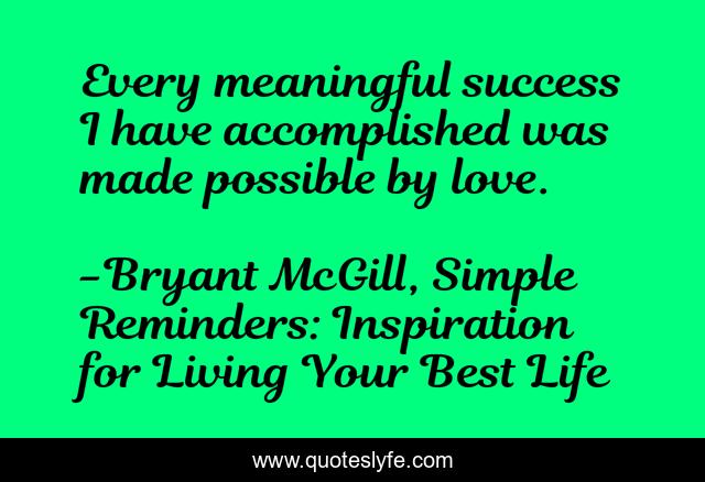 This page presents the quote "Every meaningful success I have accomplished was made possible by love.". Author of this quote is Bryant McGill, Simple Reminders: Inspiration for Living Your Best Life. This quote is about possibility, accomplishments, love, success, affection,.