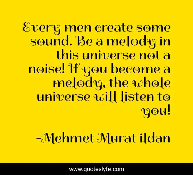 This page presents the quote "Every men create some sound. Be a melody in this universe not a noise! If you become a melody, the whole universe will listen to you!". Author of this quote is Mehmet Murat ildan. This quote is about sound, universe, melody, noise, music,.