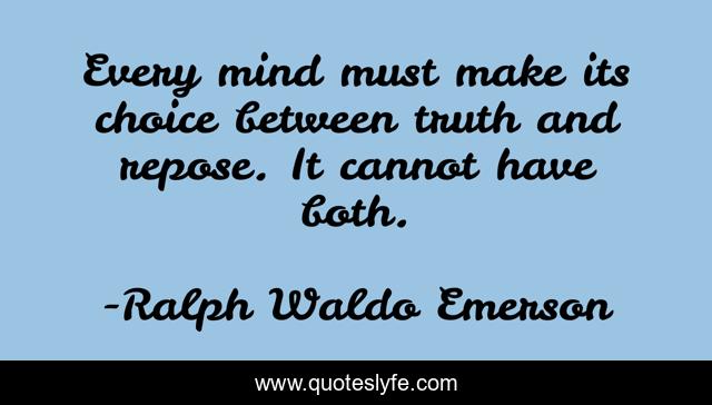 This page presents the quote "Every mind must make its choice between truth and repose. It cannot have both.". Author of this quote is Ralph Waldo Emerson. This quote is about choice, mind, between,.