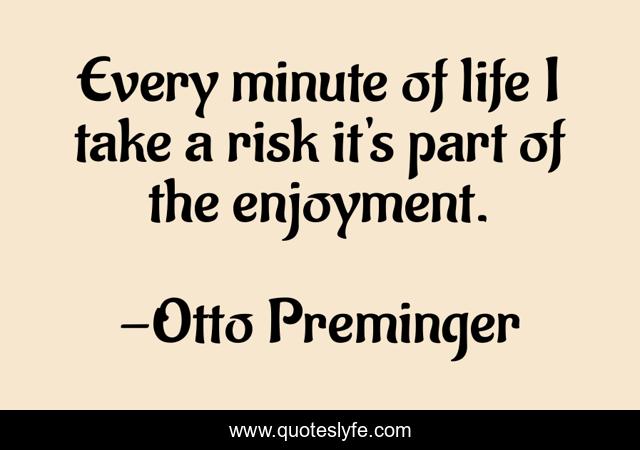 This page presents the quote "Every minute of life I take a risk it's part of the enjoyment.". Author of this quote is Otto Preminger. .