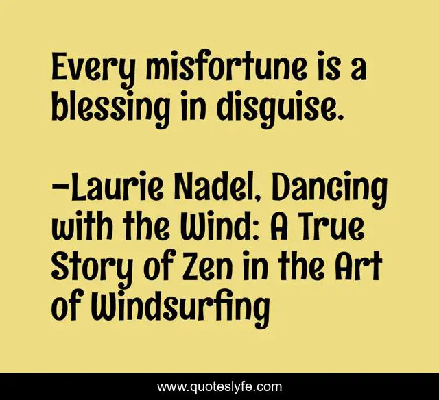 "Laurie Nadel, Dancing with the Wind: A True Story of Zen in the Art of Windsurfing Quotes." Quoteslyfe.com, 2025. Sun. 07 Dec. 2025. <https://www.quoteslyfe.com/quote/Every-misfortune-is-a-blessing-in-disguise-15427>.