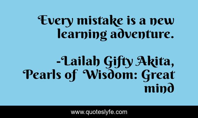 "Lailah Gifty Akita, Pearls of Wisdom: Great mind Quotes." Quoteslyfe.com, 2025. Fri. 05 Dec. 2025. <https://www.quoteslyfe.com/quote/Every-mistake-is-a-new-learning-adventure-117049>.
