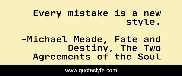 "Michael Meade, Fate and Destiny, The Two Agreements of the Soul Quotes." Quoteslyfe.com, 2025. Sun. 07 Dec. 2025. <https://www.quoteslyfe.com/quote/Every-mistake-is-a-new-style-107923>.