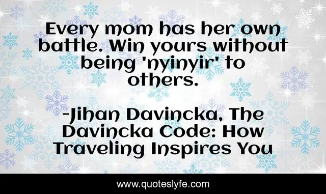 "Jihan Davincka, The Davincka Code: How Traveling Inspires You Quotes." Quoteslyfe.com, 2025. Sun. 07 Dec. 2025. <https://www.quoteslyfe.com/quote/Every-mom-has-her-own-battle-Win-166871>.