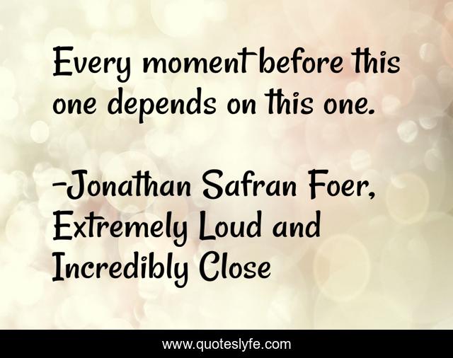 This page presents the quote "Every moment before this one depends on this one.". Author of this quote is Jonathan Safran Foer, Extremely Loud and Incredibly Close. .