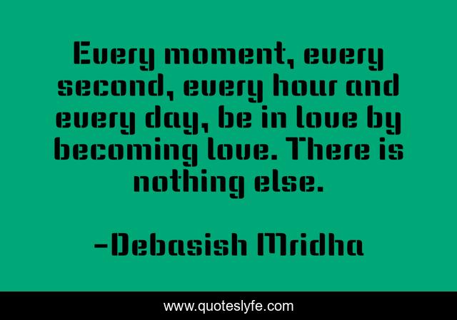 This page presents the quote "Every moment, every second, every hour and every day, be in love by becoming love. There is nothing else.". Author of this quote is Debasish Mridha. This quote is about life, love, knowledge, inspirational, intelligence, philosophy, wisdom, quotes, affection,.