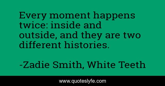 This page presents the quote "Every moment happens twice: inside and outside, and they are two different histories.". Author of this quote is Zadie Smith, White Teeth. .