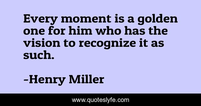 This page presents the quote "Every moment is a golden one for him who has the vision to recognize it as such.". Author of this quote is Henry Miller. This quote is about moment, him, vision,.