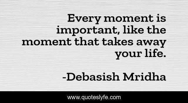 This page presents the quote "Every moment is important, like the moment that takes away your life.". Author of this quote is Debasish Mridha. This quote is about life, love, knowledge, inspirational, intelligence, philosophy, wisdom, moment, important,.