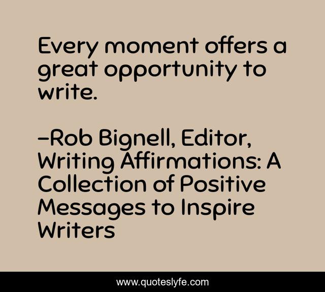 "Rob Bignell, Editor, Writing Affirmations: A Collection of Positive Messages to Inspire Writers Quotes." Quoteslyfe.com, 2025. Mon. 08 Dec. 2025. <https://www.quoteslyfe.com/quote/Every-moment-offers-a-great-opportunity-to-215007>.