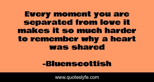 This page presents the quote "Every moment you are separated from love it makes it so much harder to remember why a heart was shared". Author of this quote is Bluenscottish. This quote is about bluenscottish, sadness, love, loss-of-love, affection,.