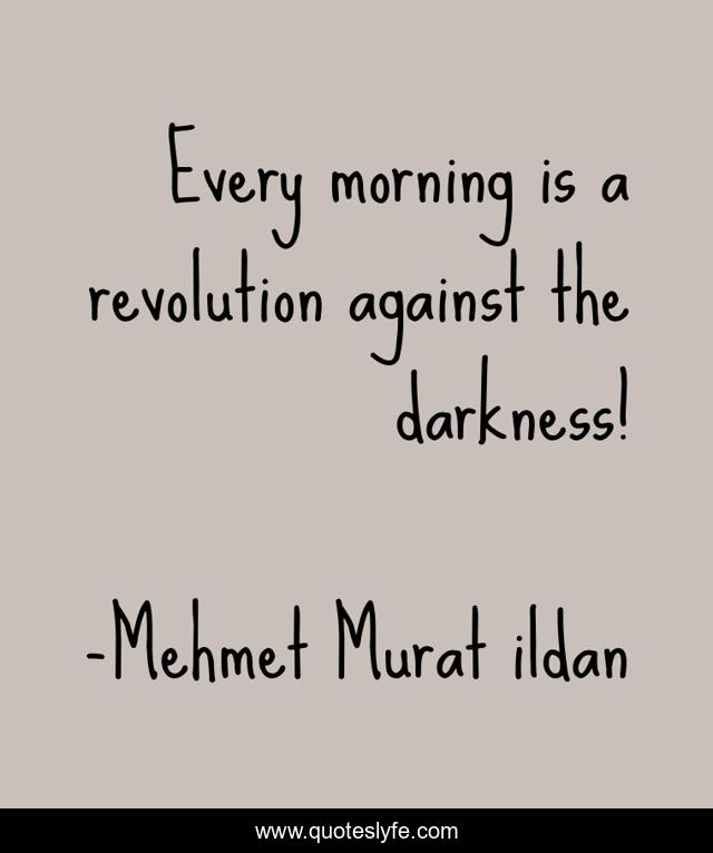 This page presents the quote "Every morning is a revolution against the darkness!". Author of this quote is Mehmet Murat ildan. This quote is about turkish-aphorisms, mornings, darkness, ildan-wise-sayings, turkish, ildan-wisdom, darkness-and-sunrise, turkish-sayings, turkish-playwrights,.