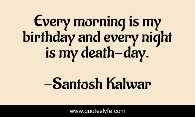This page presents the quote "Every morning is my birthday and every night is my death-day.". Author of this quote is Santosh Kalwar. This quote is about life, death,.