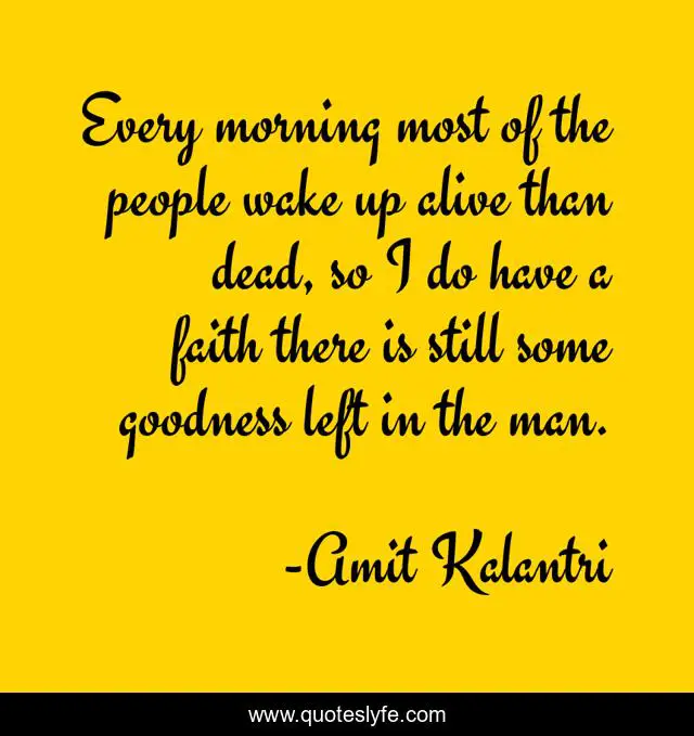 Every morning most of the people wake up alive than dead, so I do have a faith there is still some goodness left in the man.