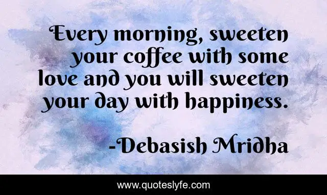 This page presents the quote "Every morning, sweeten your coffee with some love and you will sweeten your day with happiness.". Author of this quote is Debasish Mridha. This quote is about sweeten-your-day, quotes, make-your-day-happy, philosophy, debasish-mridha, life-wisdom, inspirational, enthusiasm, debasish-mridha-m-d,.