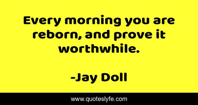 This page presents the quote "Every morning you are reborn, and prove it worthwhile.". Author of this quote is Jay Doll. This quote is about enthusiasm, confidence, inspirational, morning,.