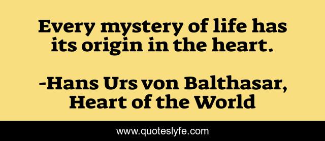 This page presents the quote "Every mystery of life has its origin in the heart.". Author of this quote is Hans Urs von Balthasar, Heart of the World. This quote is about heart, mystery-of-life,.