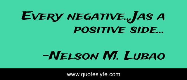 This page presents the quote "Every negative...Jas a positive side...". Author of this quote is Nelson M. Lubao. This quote is about inspirational-attitude, life, lovely, positive-aatitude, inspiration,.