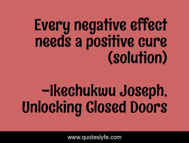 "Ikechukwu Joseph, Unlocking Closed Doors Quotes." Quoteslyfe.com, 2025. Fri. 05 Dec. 2025. <https://www.quoteslyfe.com/quote/Every-negative-effect-needs-a-positive-cure-84920>.
