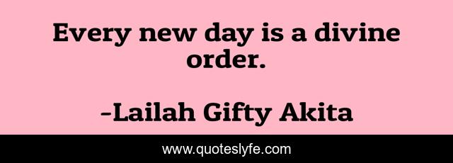 This page presents the quote "Every new day is a divine order.". Author of this quote is Lailah Gifty Akita. This quote is about divine, new-day, order, inspiration,.