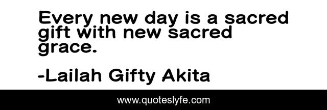 This page presents the quote "Every new day is a sacred gift with new sacred grace.". Author of this quote is Lailah Gifty Akita. This quote is about spiritual, blessings, new-day, grace,.