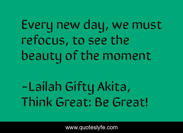 "Lailah Gifty Akita, Think Great: Be Great! Quotes." Quoteslyfe.com, 2025. Sat. 06 Dec. 2025. <https://www.quoteslyfe.com/quote/Every-new-day-we-must-refocus-to-95156>.