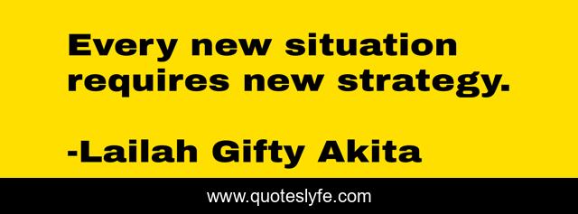 This page presents the quote "Every new situation requires new strategy.". Author of this quote is Lailah Gifty Akita. This quote is about hard-times, confidence, positive-outlook, positive, motivational, do-not-quit, strategy, difficulties, optimistic,.