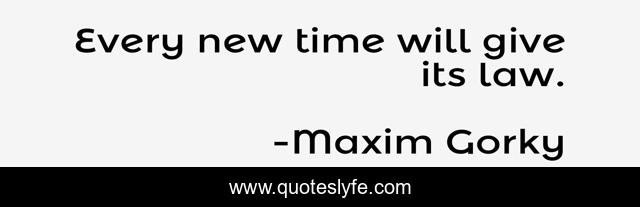 This page presents the quote "Every new time will give its law.". Author of this quote is Maxim Gorky. This quote is about law, lawyers,.