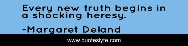 This page presents the quote "Every new truth begins in a shocking heresy.". Author of this quote is Margaret Deland. This quote is about positive, confidence, creating, change,.