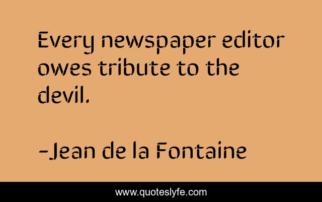 This page presents the quote "Every newspaper editor owes tribute to the devil.". Author of this quote is Jean de la Fontaine. .