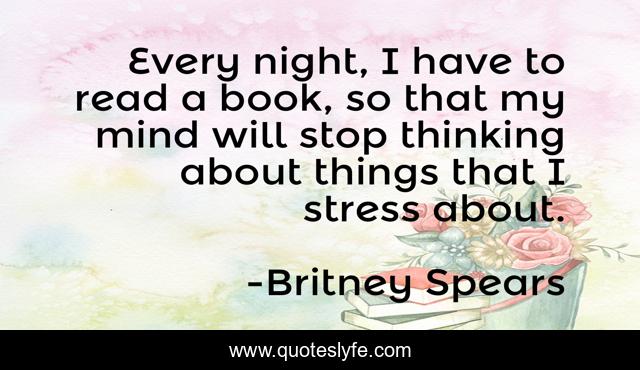 This page presents the quote "Every night, I have to read a book, so that my mind will stop thinking about things that I stress about.". Author of this quote is Britney Spears. .