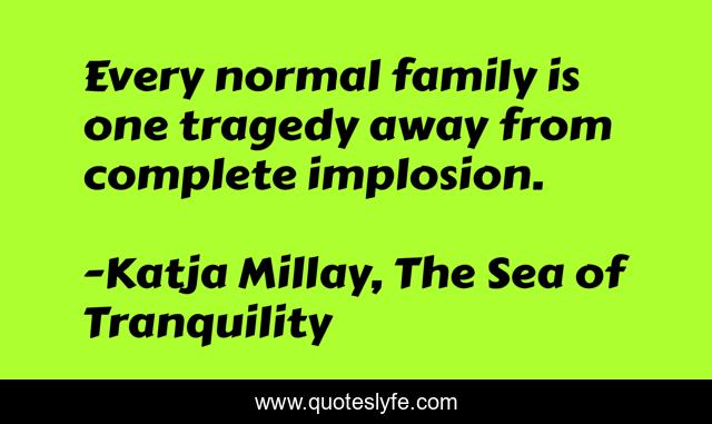 This page presents the quote "Every normal family is one tragedy away from complete implosion.". Author of this quote is Katja Millay, The Sea of Tranquility. This quote is about tragedy, family, normal,.