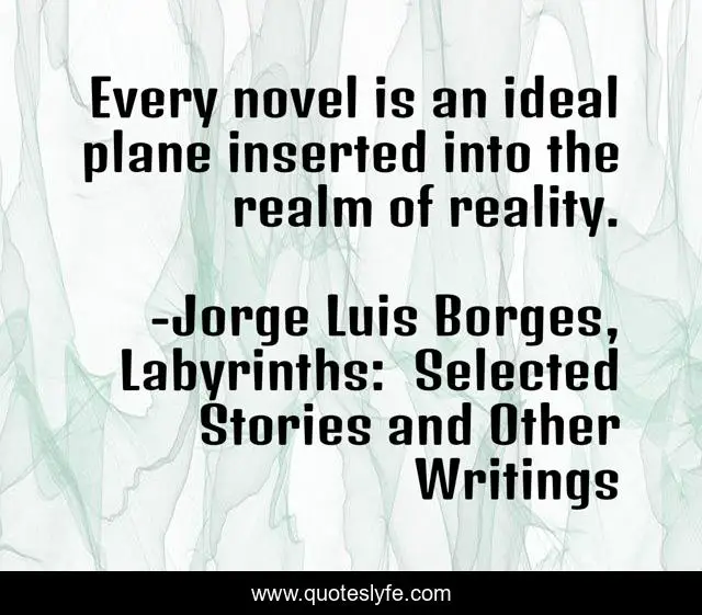 This page presents the quote "Every novel is an ideal plane inserted into the realm of reality.". Author of this quote is Jorge Luis Borges, Labyrinths: Selected Stories and Other Writings. This quote is about fiction, reality, novels,.