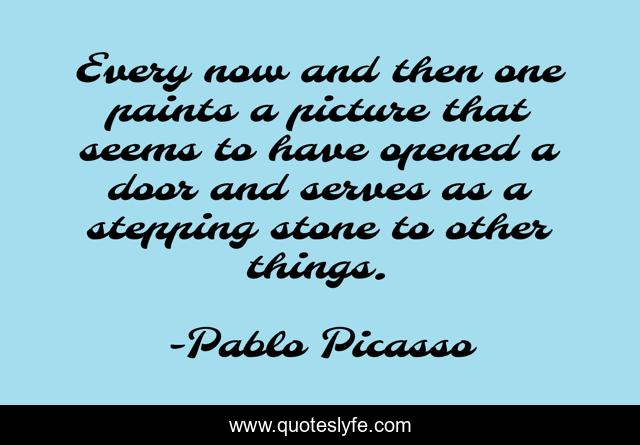 This page presents the quote "Every now and then one paints a picture that seems to have opened a door and serves as a stepping stone to other things.". Author of this quote is Pablo Picasso. This quote is about stepping-stone, art, door, painting, picture,.