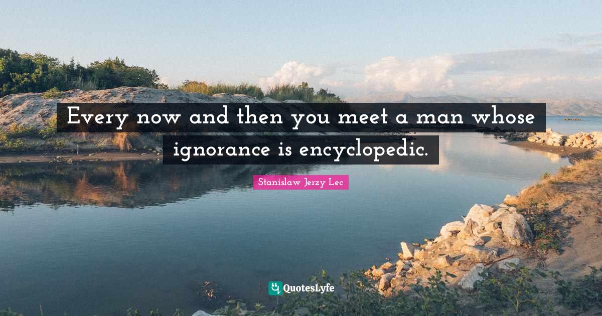 This page presents the quote "Every now and then you meet a man whose ignorance is encyclopedic.". Author of this quote is Stanislaw Jerzy Lec. This quote is about ignorance, men, now and then,.