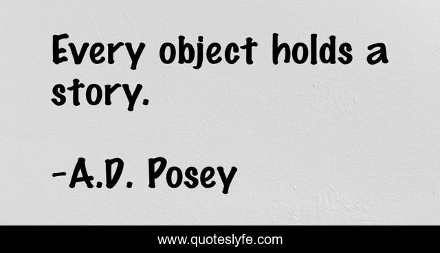 This page presents the quote "Every object holds a story.". Author of this quote is A.D. Posey. This quote is about story, storytelling, storytellers, object, writing, write, writers, ad-posey, inspirational,.