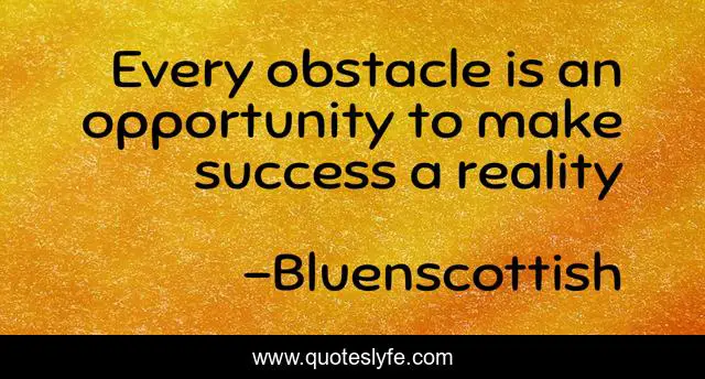 This page presents the quote "Every obstacle is an opportunity to make success a reality". Author of this quote is Bluenscottish. This quote is about leadership, bluenscottish, success, reality,.