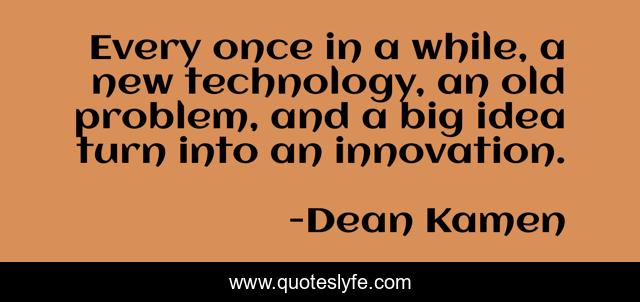 This page presents the quote "Every once in a while, a new technology, an old problem, and a big idea turn into an innovation.". Author of this quote is Dean Kamen. This quote is about problem, idea, innovation,.
